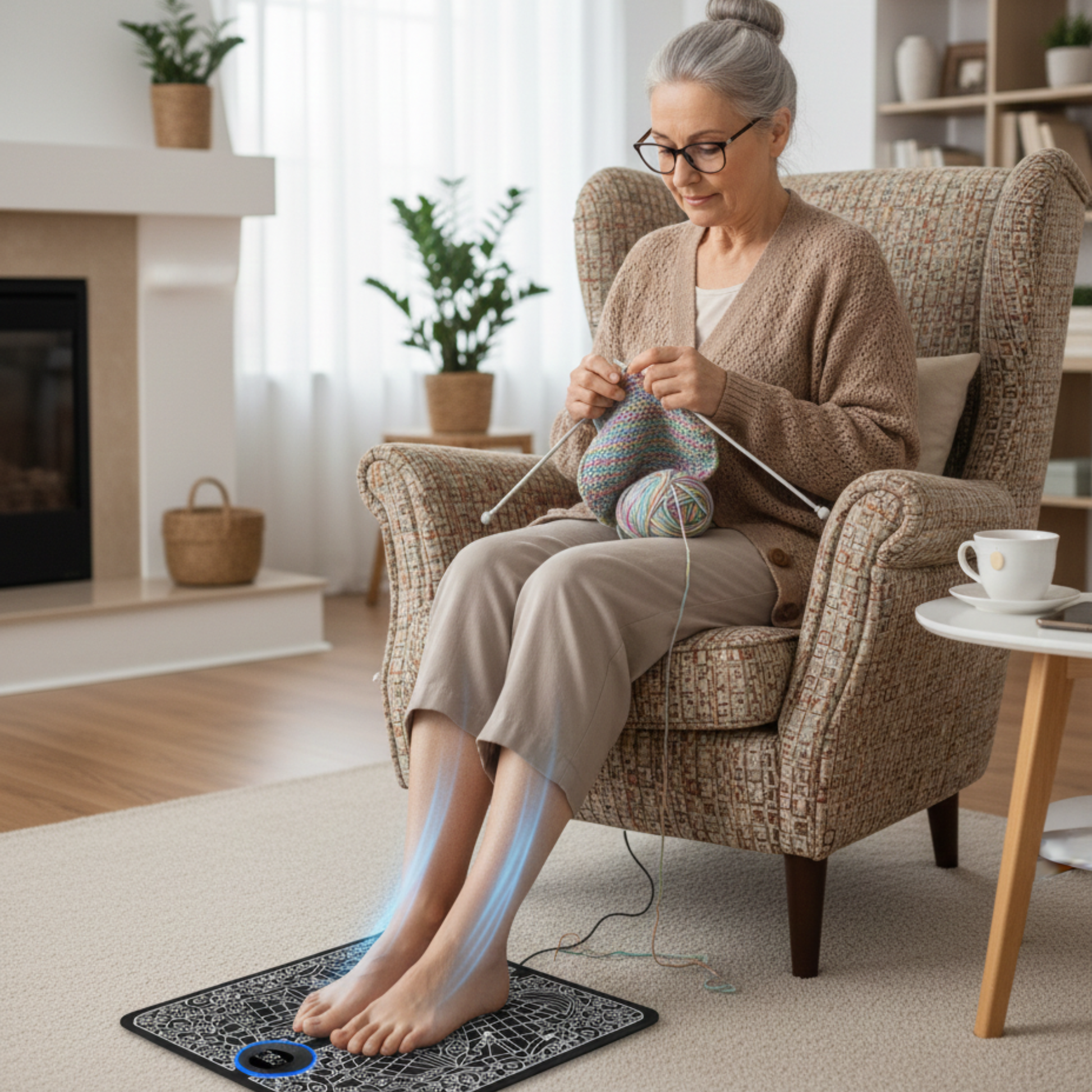 This advanced EMS mat uses precision micro-currents to eliminate foot aches, reduce swelling, and boost circulation, giving you professional-grade recovery from the comfort of your couch.